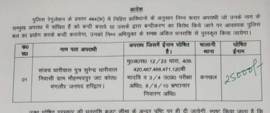 कथित मंगलौर निवासी नेता सहित तीन की गिरफ्तारी पर पुलिस कप्तान ने तय किए इनामइनाम जारी होते ही बहस पहुंची चरम पर, कथित इनामी के छुपने के लिए भटकते फिरने की मिल रही खबर