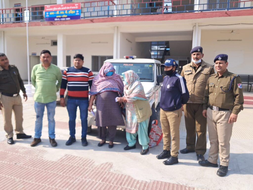 हरिद्वार:—20 फरवरी को वादी श्री वीरेंद्र सिंह धीरू पुत्र श्री राम सका बागरी नि0- 123 भरहुत नगर सतना मध्य प्रदेश Ex-MLA मध्यप्रदेश ने थाना हाजा पर लिखित तहरीर देकर जिसमें वादी उपरोक्त द्वारा रेलवे स्टेशन हरिद्वार पर ट्रेन में चढ़ते समय अपनी पत्नी के गले से चेन लूट होने के संबंध में मु. अ. सं. 9/23 धारा 379 भादवी बनाम अज्ञात पंजीकृत कराया गया, मुकदमा उपरोक्त के सफल अनावरण हेतु थानाध्यक्ष महोदय के आदेशानुसार विवेचना एसआई श्री शीशपाल सिंह के सुपुर्द की गई, श्रीमान पुलिस अधीक्षक रेलवेज महोदय के निर्देशन व श्रीमान अपर पुलिस अधीक्षक रेलवेज के निकट पर्यवेक्षण मे थाना स्तर पर थाना अध्यक्ष महोदय के नेतृत्व में टीम का गठन किया गया, जिसमें तत्काल मुखबिर तंत्र सक्रिय कर सीसीटीवी फुटेज के माध्यम से हैं, उपरोक्त घटना का सफल अनावरण 24 घंटे से पूर्व कर दो महिला अभियुक्त गणों को मय घटना संबंधित माल के साथ पुरुषार्थी मार्केट के पास से गिरफ्तार किया गया एवम मुकदमा सम्बंधित मे अभी तक की विवेचना बयान वादी / बयान पीड़िता के आधार पर लूट की घटना का होना प्रकाश मे आया एवम थाना स्तर पर गठित टीम द्वारा उक्त लूट की घटना को सफल अनावरित करते हुंवे घटना सम्बंधित माल सहित 02 महिला अभि0 गणों को गिरफ्तार किया गया जिसकी आम जनमानस व रेलवे प्रशासन/ पुलिस उच्च अधिकारी गणों द्वारा घटना के सफल अनावरण के संबंध में थाना जीआरपी हरिद्वार पुलिस की भूरी भूरी प्रशंसा की गई उक्त महिला अभियुक्त गणो की गिरफ्तारी से अपराधों की रोकथाम में कमी आएगीविवरण अभियुक्त गण :-