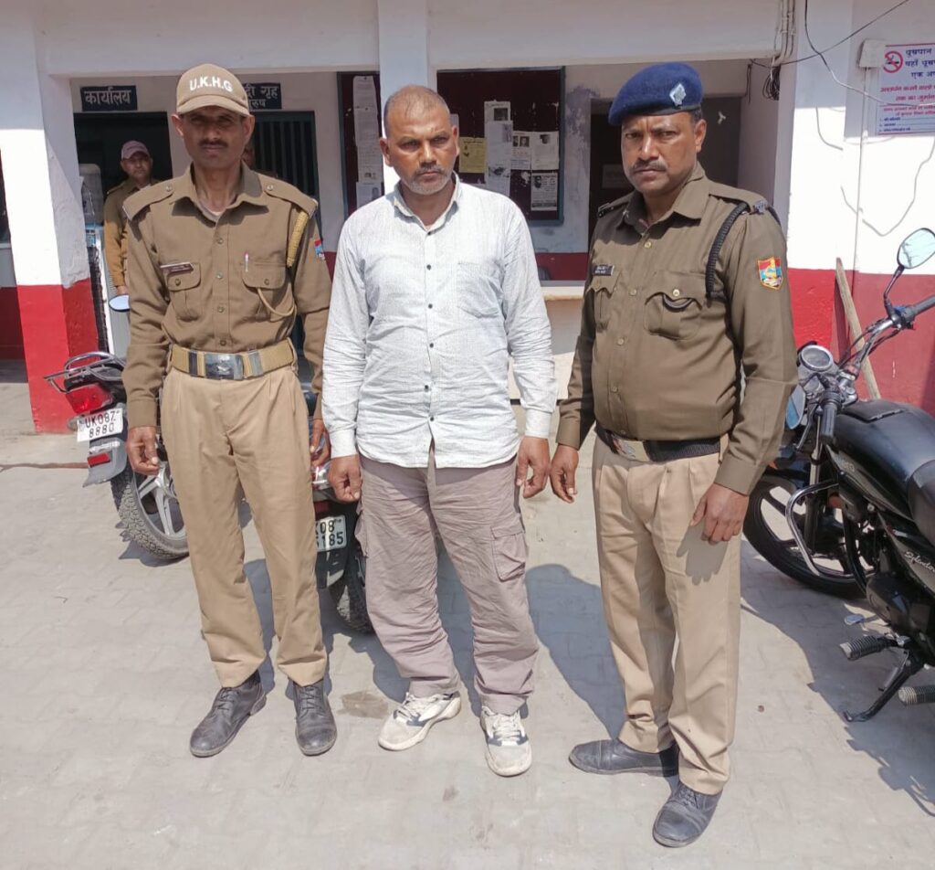 जिस पर कार्यवाही करते हुए पुलिस टीम द्वारा अभियुक्त राजकुमार पुत्र सत्य दिन निवासी प्लॉट नंबर 15 दुर्गा विहार राज्य लोक कॉलोनी ज्वालापुर को त्रिमूर्ति सुभाषनगर से दबोचा गया।नाम पता गिरफ्तार अभियुक्त1– राजकुमार पुत्र सत्यदीन निवासी प्लॉट नंबर 15 दुर्गा विहार राज लोक कॉलोनी ज्वालापुर हरिद्वार फरार अभियुक्त१– संदीप पुत्र राजकुमार निवासी उपरोक्त२– सोनिया पत्नी राजकुमार निवासी उपरोक्त ३– हरकेश बहादुर पुत्र जगदीश प्रसाद निवासी कमल विहार अनेकी हेतमपुर थाना सिडकुल हरिद्वार ४– प्रदीप पाल पुत्र सुमंत पाल निवासी मकान नंबर 52 ऋषिकुल विद्यापीठ हरिद्वार ५– सुमंत पाल पुत्र राम सिंह निवासी उपरोक्त