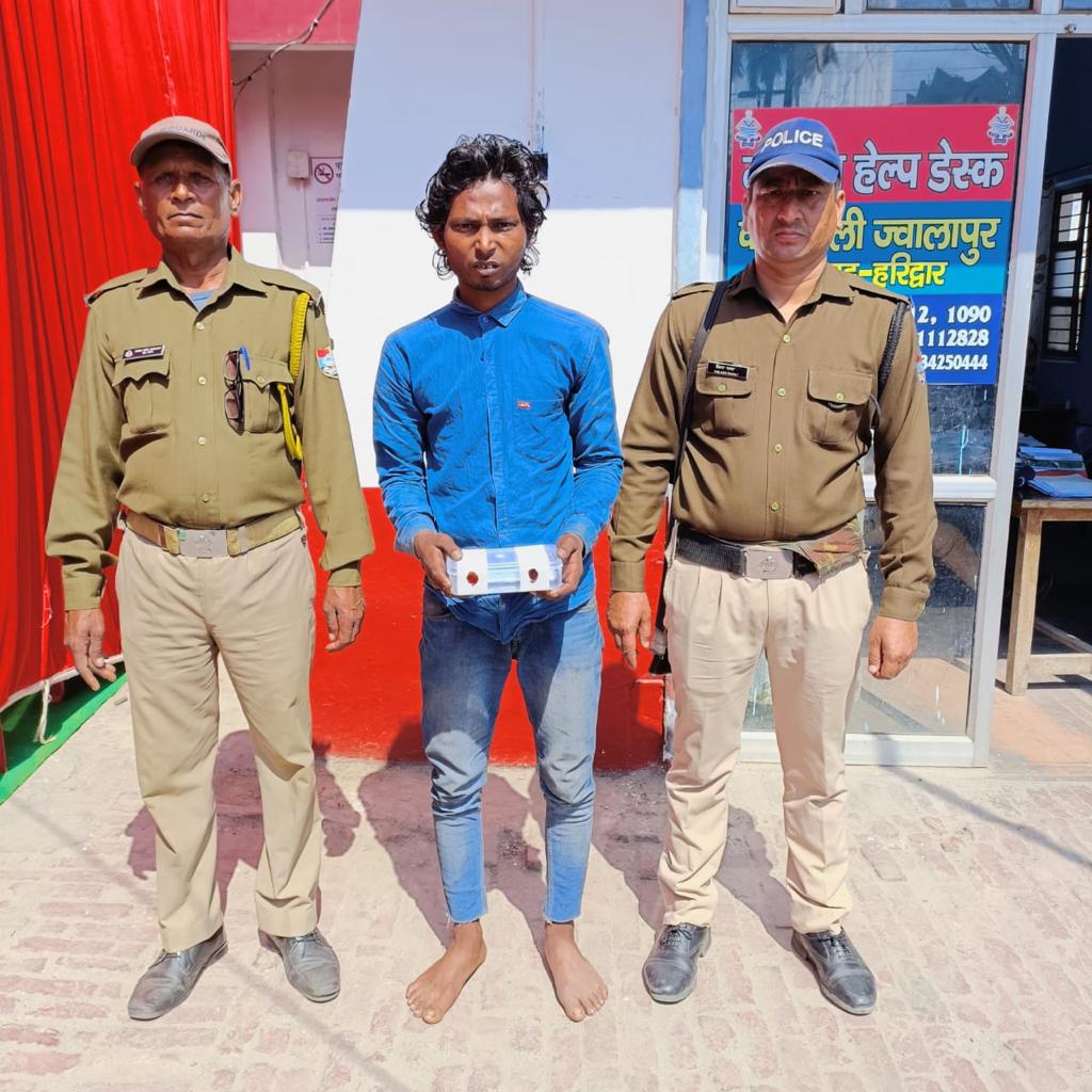 अभिमन्यु उर्फ़ नानू पुत्र शिवमोहन उर्फ़ चंदा निवासी सीतापुर फाटक के पास ज्वालापुर कोतवाली ज्वालापुर हरिद्वार,,,बरामदगी का विवरणएक मोबाइल फोन,,,,पुलिस टीम में,1. उपनिरीक्षक सुनील रमोला