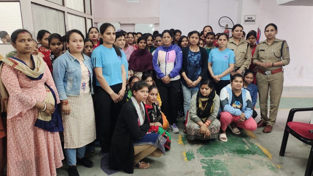 गौरा शक्ति टीम,,,खुद की रक्षा के लिए नारी शक्ति को तैयार करने के लिए मुख्यमंत्री श्री पुष्कर सिंह धामी के विजन “नारी शक्ति उत्सव” को सफल बनाने में जुटी हरिद्वार पुलिस लगातार महिलाओं को आत्मरक्षा के गुर सिखा रही है। आज दिनांक 31-03-2023 को कोतवाली नगर औघोगिक क्षेत्र स्थित अलग-अलग कंपनियों क्रमशः मनचंदा हर्बल प्रोडक्ट कंपनी में 35 महिलाओं व पीएम कोना प्राइवेट लिमिटेड में 70 महिलाओं को प्रशिक्षित टीम “गौरा शक्ति” द्वारा self defence techniques का प्रशिक्षण देने के साथ-साथ महिला अपराधों व उनके विधिक अधिकारों के प्रति जागरूक किया गया।
