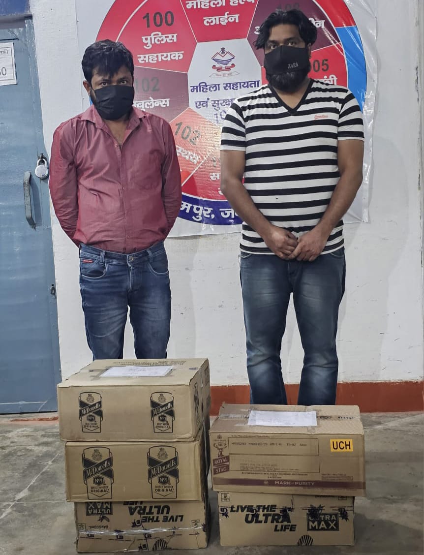 अवैध शराब की तस्करी पर पुलिस टीम ने की कार्यवाही,6 पेटी अंग्रेजी शराब/वियर के साथ 02 अभियुक्तों को मय कार के धर दबोचा,थाना श्यामपुर,माननीय मुख्यमंत्री उत्तराखंड सरकार द्वारा चलाए जा रहे नशा मुक्त देवभूमि मिशन 2025 को सफल बनाने के क्रम में पुलिस टीम द्वारा दिनांक1.04.23 की रात्रि को थाना श्यामपुर क्षेत्र से 02अभियुक्तों को कार वैगनआर RJ14CC4878 से अवैध रूप से चार पेटी अंग्रेजी शराब 02 पेटी वियर के परिवहन करते हुए पकड़ा गया।,,,गिरफ्तार अभियुक्त