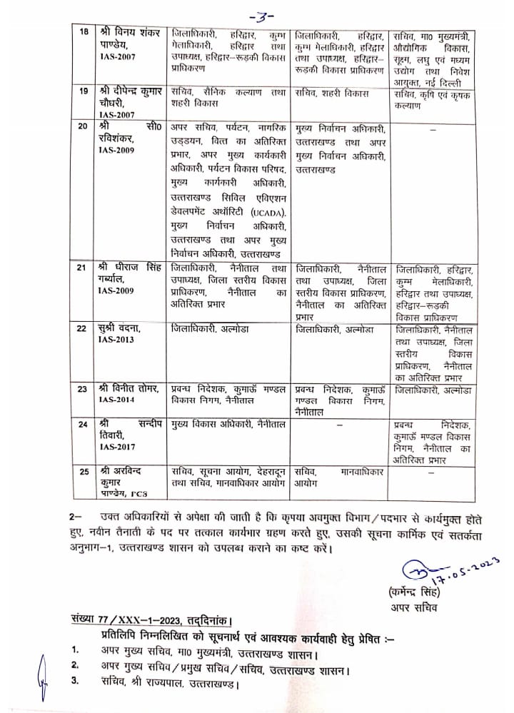 मुख्यमंत्री पुष्कर सिंह धामी की संस्तुति के बाद अपर सचिव कर्मेंद्र सिंह ने जारी किए आदेश।।
