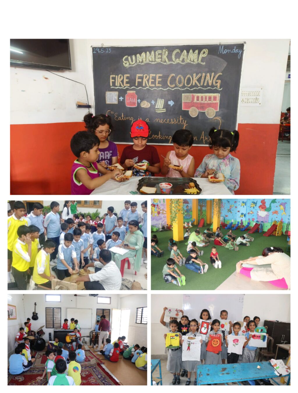 एंजल्स एकेडमी सीनियर सेकेंडरी स्कूल में 29 मई से 3 जून तक ‘’समर कैंप’’ (कक्षा प्रेप से चौथी )तथा NEP 2020 के अनुसार स्कील्ल डेव्लपमेंट प्रोग्राम (कक्षा पाँचवी से आठवी ) का आयोजन किया। शिविर का उद्देश्य व्यक्तिगत विकास को बढ़ावा देना और प्रत्येक दिन को एक नए और रोमांचक साहसिक कार्य के रूप में देखना और अनुभव करना था। शिविर मे लगभग 1300 प्रतिभागियों ने भाग लिया। शिविर में ’समर कैंप के अंतर्गत बच्चो ने योग,नृत्य, कला, तायक्वोंडो, ज़ुम्बा और संगीत, फायर फ्री कुकिंग, ओरिगैमी, रंगों के साथ खेल खेल मे विभिन्न चिजे सीखी। स्कूल ने छात्रों के लिए मैजिक शो और कठपुतली शो का भी आयोजन किया। स्कील्ल डेव्लपमेंट प्रोग्राम के अंतर्गत कक्षा पाँचवी से आठवी के बच्चो ने खेल गतिविधि जैसे भाला फेंक, बास्केट बॉल, , वॉलई बॉल, तायक्वोंडो, में भाग लिया ! इसके साथ साथ ऐपन आर्ट , शिल्प कला , पंक्चर लगाना, एव्म पारंपरिक मिट्टी के बर्तन बनाना ,ज़ुम्बा, तथा गायन, वाद्ययंत्र बजाना, बटन लगाना, सिलाई करना ,कढ़ाई जैसी