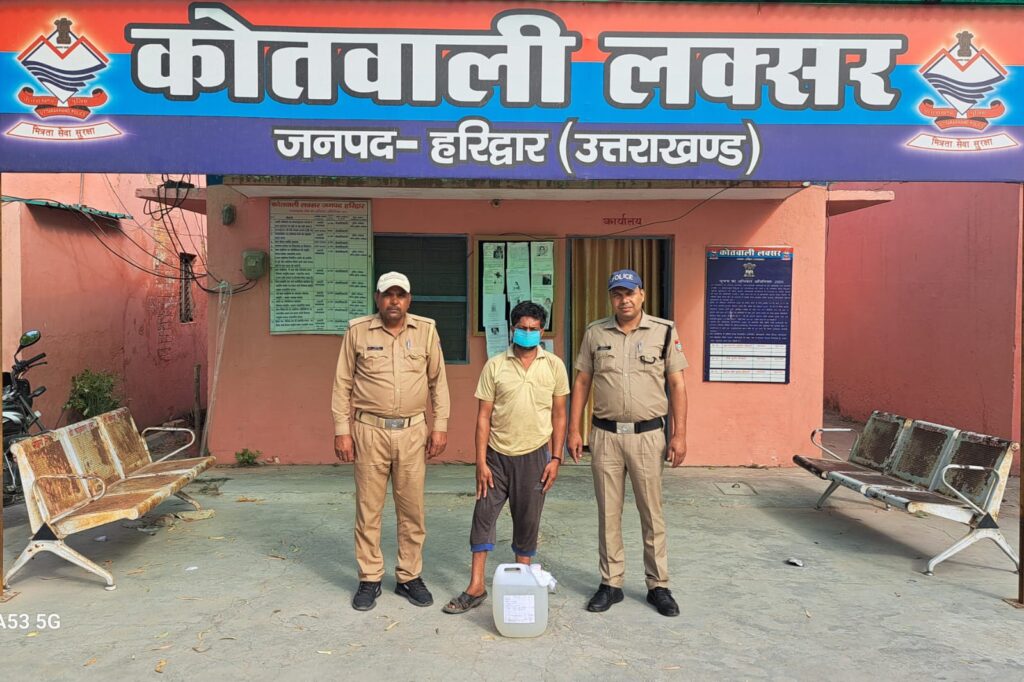 कोतवाली लक्सर….माननीय मुख्यमंत्री उत्तराखंड के द्वारा उतराखण्ड को नशा मुक्त करने के लिए चलाई जा रही नशा मुक्त देवभूमि मिशन 2025 को साकार करने हेतु अवैध शराब बनाने व तस्करी करने वाले अभियुक्तों की गिरफ्तारी हेतु चलाये जा रहे अभियान के अन्तर्गत कोतवाली लक्सर पुलिस टीम द्वारा दिनांक 15.06.2023 को ग्राम रायघाटी भिक्कमपुर से अभियुक्त नेत्रपाल पुत्र राजेन्द्र कुमार को 10 लीटर अवैध देशी शराब के साथ पकड़ा गया।