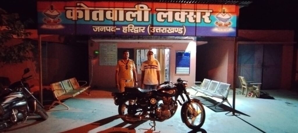 कोतवाली लक्सर,SSP हरिद्वार द्वारा जनपद में नाबालिक वाहन चालकों / दोषपूर्ण नंबर प्लेट/मॉडिफाइड साइलेंसरों/ बहुत तेज पटाखे की आवाज करने वाले वाहनों/ बिना कागज़ के चलने वाले /प्रेशर हॉर्न आदि वाहनों के विरुद्ध कड़ी कार्यवाही करने हेतु निर्देशित क्रम में पुलिस टीम द्वारा दिनांक-16.06.23 को बुलेट से पटाखे की आवाज व प्रेशर हार्न का प्रयोग कर आम जनता में दहशत का माहौल पैदा करने वाले शरारती तत्वों के विरूद्ध कार्यवाही करते हुए बुलेट वाहन पर सवार अमन पुत्र दिलशाद कोमोडिफाइड साइलेंसर से पटाखे की आवाज निकालकर व प्रेशर हार्न बजाकर आम जनता में दहशत का माहौल करने वाले लक्सर मार्केट के पास पकडा गया व उपरोक्त के विरूद्ध पुलिस एक्ट में कार्यवाही करते हुए बुलेट मोटरसाईकिल को एमवी एक्ट में सीज किया गया।