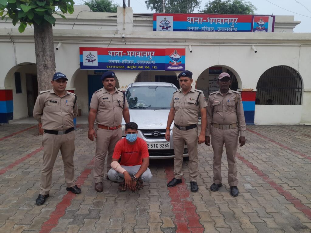 थाना भगवानपुर,दिनांक 23.06.023 सिरचन्दी भगवानपुर निवासी मनव्वर द्वारा अज्ञात चोर पर मक्खनपुर भगवानपुर गागलेहड़ी रोड़ स्थित नेशनल मोटर्स से स्वयं की सेन्ट्रो कार सिल्वर कलर को चोरी कर ले जाने के सम्बन्ध में थाना भगवानपुर में प्रार्थना पत्र दिया गया। शिकायत के आधार पर थाने पर अज्ञात अभियुक्त के खिलाफ चोरी की मुकदमा दर्ज किया गया।दिनांक 24.06.2023 को मुखबिर द्वारा दी गई गुप्त सूचना के आधार पर पुलिस टीम ने काली नदी चेकपोस्ट पर चैकिंग कर चुराई गई सेन्ट्रो कार को रोका गया और कार चला रहे अभियुक्त सावेज को नियमानुसार हिरासत में लिया गया। मौके से फरार एक अभियुक्त के बारे में सावेज से पूछताछ करने पर जानकारी मिली कि फरार अभियुक्त सावेज के ही ताऊ का लड़का है और कार चुराने की घटना में सम्मिलित रहा है।
