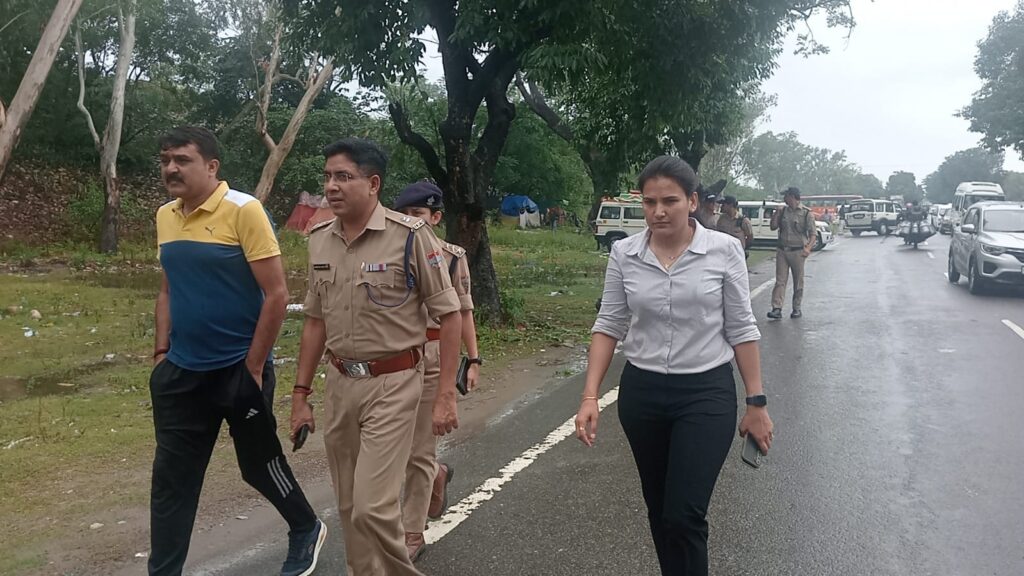 जनपद हरिद्वार में हो रही मूसलाधार बारिश से शहर में जगह-जगह जलभराव की स्थिति को देखते हुए एसएसपी हरिद्वार श्री अजय सिंह द्वारा एसपी क्राइम श्रीमती रेखा यादव एवं एसपी सिटी श्री स्वतंत्र कुमार सिंह समेत अन्य पुलिस अधिकारियों के साथ भगत सिंह चौक, रानीपुर मोड़, बैरागी कैंप, आनंदवन/अलकनंदा कट, सीसीआर आसपास क्षेत्र का भौतिक निरीक्षण कर संबंधित क्षेत्रों में यातायात व्यवस्था एवं जलभराव से ट्रैफिक संचालन की गति में कमी को देखते हुए पानी की निकासी हेतु संबंधित विभागों से समन्वय स्थापित करने समेत हरिद्वार आए यात्रियों की सहायता हेतु अधीनस्थों को आवश्यक दिशा निर्देश दिए।.
