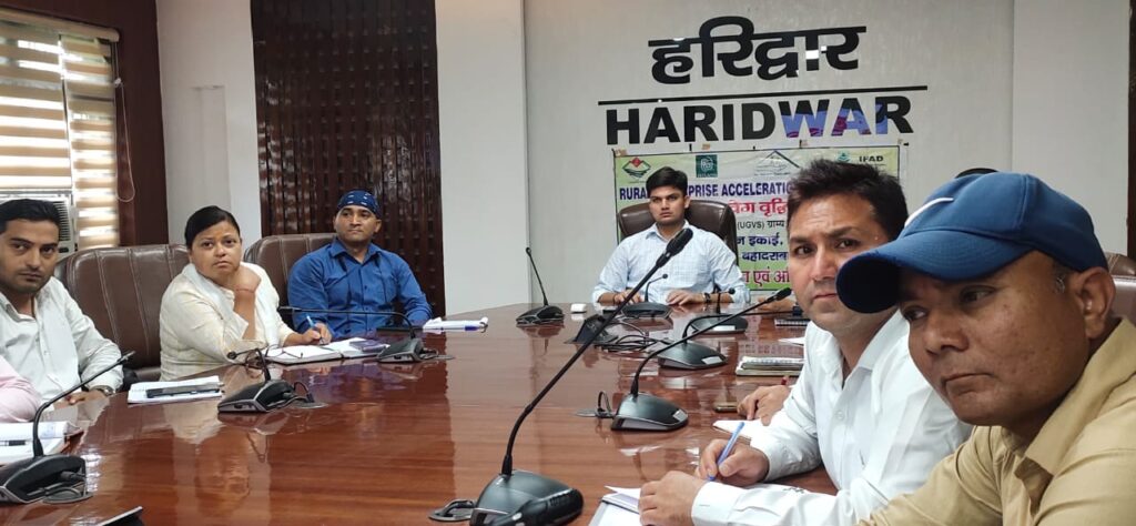 हरिद्वार: ग्रामीण उद्यम वेग वृद्धि परियोजना(रीप)नेशनल रूरल लाइवलिहूड मिशन एनआरएलएम एवं रूरल बिजनेस एक्यूबेटर सेन्टर (आरबीआई) द्वारा एक दिवसीय अभीमुखीकरण कार्यशाला का आयोजन गुरुवार को विकास भवन सभागार में मुख्य विकास अधिकारी श्री प्रतीक जैन एवं परियोजना निदेशक श्री कैलाश नाथ तिवारी की अध्यक्षता में आयोजित की गयी, जिसमें ग्रामीण उद्यम वेग वृद्धि परियोजना के जिला स्तरीय स्टाफ एवं ब्लाक स्टाफ के द्वारा प्रतिभाग किया गया।