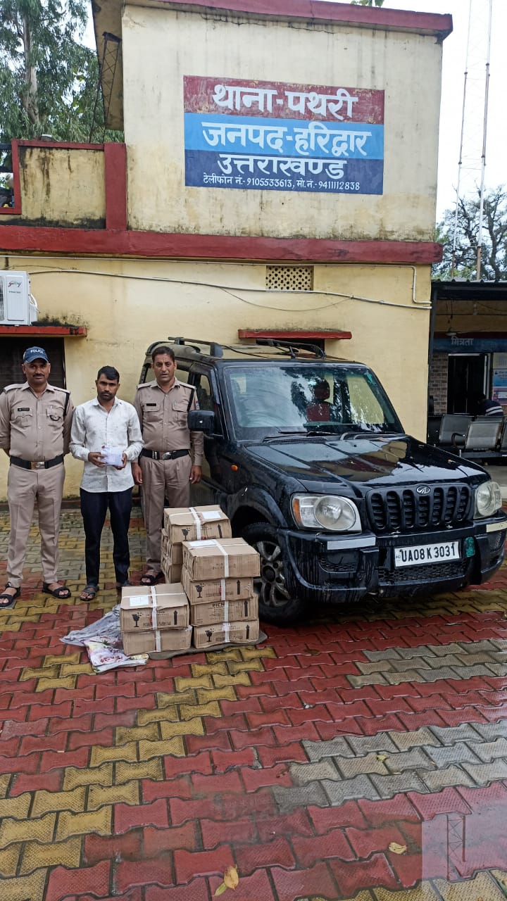 थाना पथरी,माननीय मुख्यमंत्री उत्तराखंड के “ड्रग्स फ्री देवभूमि मिशन 2025” अभियान को सार्थक बनाने हेतु एसएसपी हरिद्वार द्वारा दिए गए कड़े दिशा निर्देशों के क्रम में पुलिस टीम द्वारा फेरूपुर चौकी के पास के पास से एक अभियुक्त को स्कार्पियो कार में 15 पेटी देशी शराब परिवहन करते हुए पकड़ा गया।स्कार्पियो की तलाशी लेने पर कार से 15 पेटी देशी शराब बरामद कर तस्करी में प्रयुक्त कार जब्त की गई।