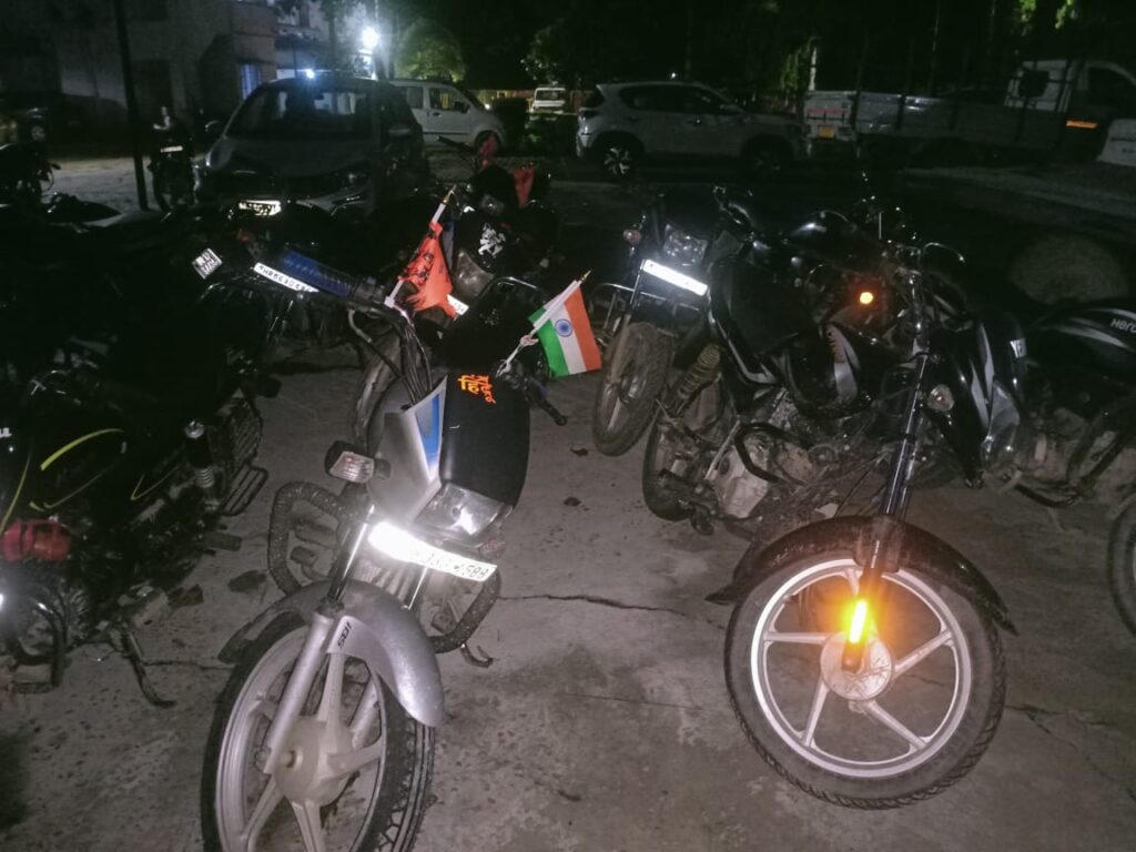 थाना झबरेडा:—प्रचलित कांवड़ मेला को सकुशल संपन्न कराने के उद्देश्य एसएसपी हरिद्वार द्वारा बिना साइलेंसर मोटरसाइकिल की चैकिंग किए जाने के आदेश प्राप्त हुए थे आदेश के अनुपालन में दिनांक 11.07.23 को लखनौता चौकी पर थानाध्यक्ष झबरेड़ा धर्मेंद्र राठी,चौकी प्रभारी लखनौता उप निरीक्षक नवीन चौहान, उपनिरीक्षक रविंद्र सिंह द्वारा बिना साइलेंसर मोटरसाइकिल के विरुद्ध कार्यवाई करते हुए 14 मोटरसाइकिल को सीज की गई तथा 13 मोटरसाइल के नगद चालान करते हुए शमन शुल्क ₹13000/- वसूल किया गया।