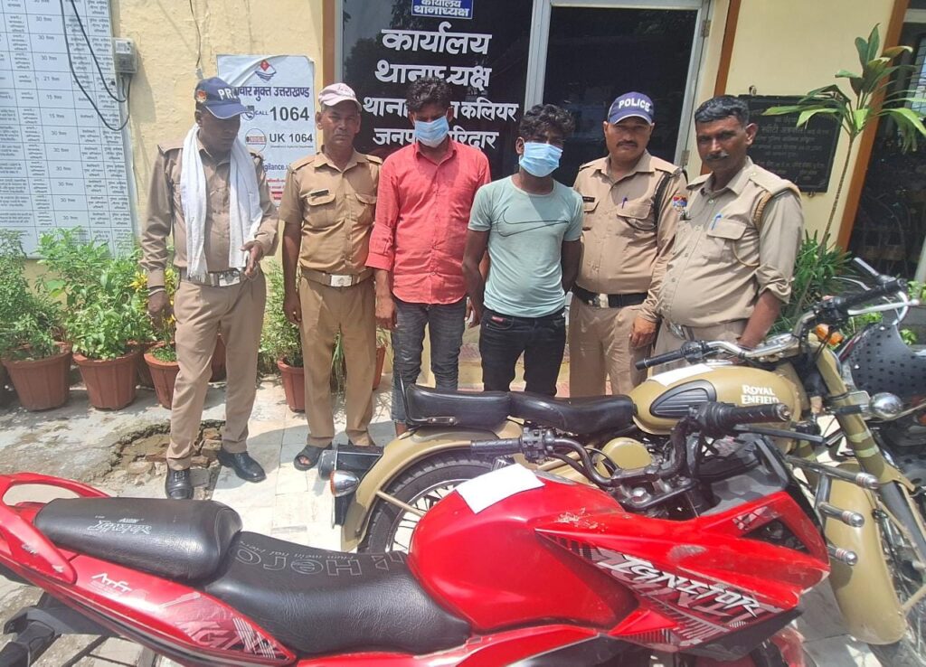 पिरान कलियर:—2 मोटरसाइकिल के साथ पुलिस ने 02 शातिर चोरों को धर दबोचा,अभियुक्त मनोज वाहन चोरी के मामलों में पहले भी जा चुका है जेल।