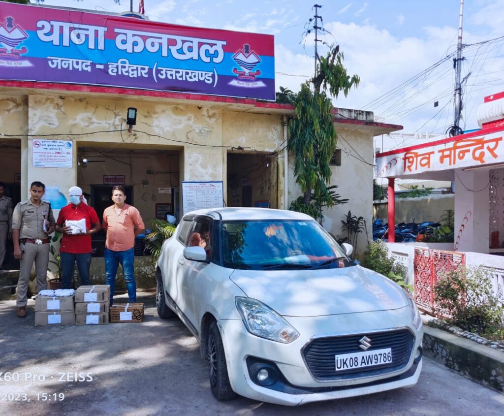 मुख्यमंत्री के निर्देश पर चलाए जा रहे ड्रग्स फ्री देवभूमि अभियान में नशा तस्करों के विरुद्ध हरिद्वार पुलिस की कार्यवाही लगातार है जारी,स्विफ्ट कार से शराब तस्करी करते कनखल पुलिस ने दबोचा एक शराब तस्कर मयंक आनन्द को,5 पेटी शराब व 1 पेटी बीयर बरामद कर,तस्करी में प्रयुक्त कार को किया जब्त,आबकारी अधिनियम के तहत मुकदमा दर्ज कर भेजा जैल