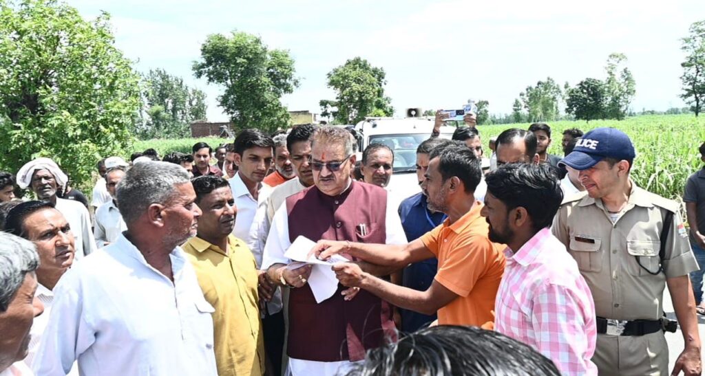 इस अवसर पर किसानों ने कृषि मंत्री गणेश जोशी के समक्ष अतिवृष्टि से हुए नुकसान से संबंध में अपनी समस्या को रखा। किसानों द्वारा मंत्री को अवगत कराया गया कि भारी बारिश के साथ औद्योगिक क्षेत्र का रसायनिक जल भी खेतों में जाने से भी फसलों को नुकसान हुआ है, इसकी सैंपलिंग की जाए। इस दौरान उन्होंने आपदा से पीड़ित लोगो को आश्वासन दिया कि धामी सरकार उनके साथ है। कृषि मंत्री गणेश जोशी ने कहा कि किसान हमारा अन्नदाता है, किसानों की समस्या जानने के लिए बाढ़ ग्रस्त क्षेत्रो का जायजा लिया जा रहा है, जिससे किसानों की हर सम्भव मदद की जाए। उन्होंने बताया कि सरकार ने किसानों के तीन महीने के बिजली के बिल स्थगित कर दिए हैं, कृषि ऋण पर भी बैंकों की रिकवरी पर तीन माह के लिए रोक लगा दी है। उन्होंने कहा कि पूरे क्षेत्र को आपदा ग्रस्त घोषित किया जा रहा है और सरकार के जो मानक हैं उनके अनुरूप मदद की जा रही है। मंत्री गणेश जोशी ने कुछ गांव जो अति जलभराव के कारण सर्वेक्षण से छूट गए है, उसके लिए कहा सचिव कृषि को भी हरिद्वार जनपद के आपदा प्रभावित क्षेत्र में कैंप करने के निर्देश दिए। मंत्री ने कहा किसान हमारे अन्नदाता हैं उनकी हर समस्या का समाधान करना सरकार की प्राथमिकता में शामिल है। उन्होंने कहा किसानों द्वारा जो कृषि ऋण है उसका ब्याज माफ करने की मांग की गई है, उसका समाधान भी शीघ्र किया जाएगा। मंत्री ने कहा जो केंद्र सरकार के मुआवजे के मानक है वह बहुत कम हैं, जो भी हमारे किसान भाइयों को नुकसान हुआ है उसकी भरपाई ना के बराबर होगी। इस संबंध में भी वह मुख्यमंत्री से वार्ता कर आपदा राहत कोष से किसान भाइयों की मदद करने का प्रयास करेंगे। ताकि किसानों को राहत मिल सके। उन्होंने कहा हरिद्वार जनपद के आपदा प्रभावित में कुछ जगह पर यह देखा गया कि सिडकुल का केमिकल से जो पानी आया है उससे कृषि को बहुत ज्यादा क्षति हुई है गन्ने की फसल खराब हो गई हैं। इस सब की रिपोर्ट मुख्यमंत्री को सौंपेंगे। मंत्री ने कहा पुष्कर सिंह धामी सरकार ऐसी कठिन स्थिति में अपने किसान भाइयों के साथ खड़ी है।