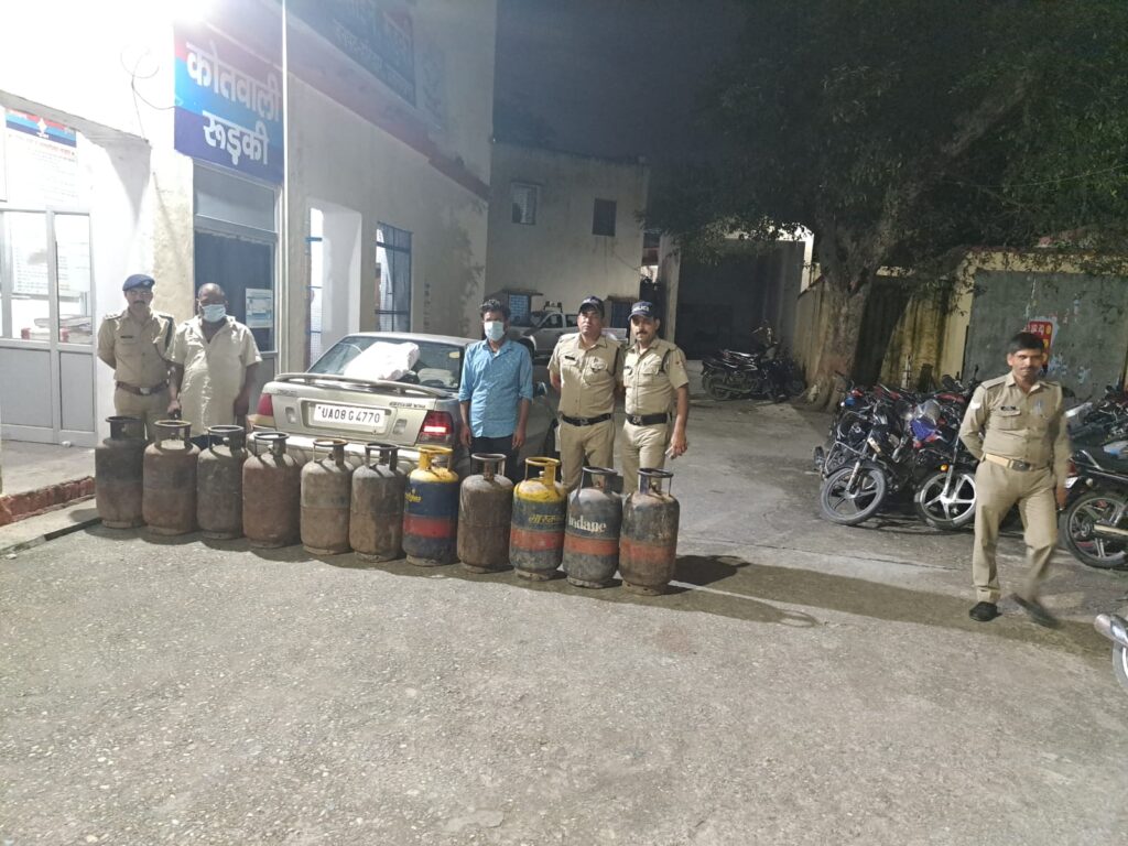 एलपीजी गैस की कालाबाजारी का हरिद्वार पुलिस ने किया भंडाफोड़,एलपीजी गैस सिलेंडर से कमर्शियल गैस सिलेंडर में रिफलिंग का चल रहा था खेल,दो आरोपी दबोचे,11 एलपीजी गैस सिलेंडर, नोजल पाइप व कार बरामद।