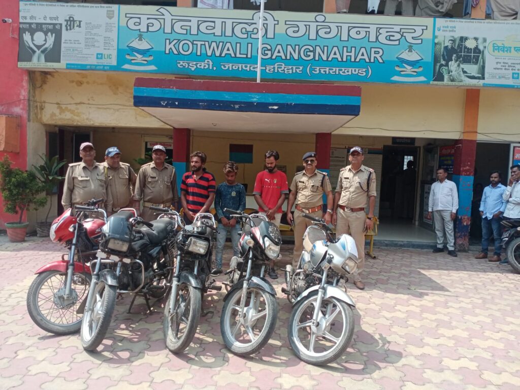एसएसपी की लीडरशिप में सफलता के नए आयाम छू रही है हरिद्वार पुलिस,E-FIR के माध्यम से दर्ज हुआ था वाहन चोरी का मुकदमा,हरिद्वार पुलिस ने दबोचे वाहन चोर गिरोह के तीन सदस्य,गैंग के सदस्यों की निशांदेही पर 05 दोपहिया वाहन बरामद।
