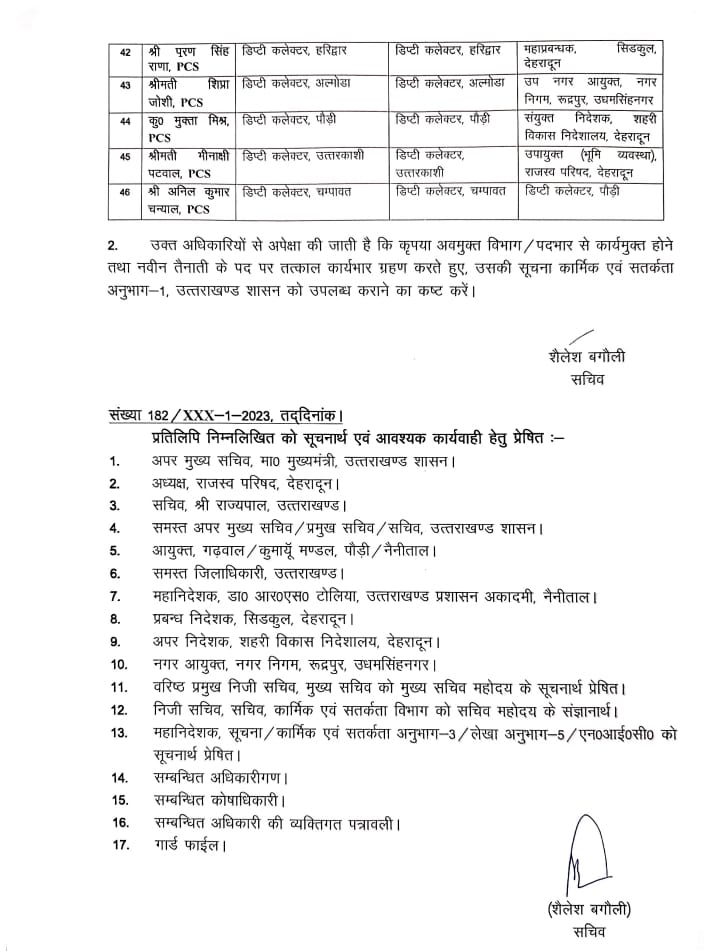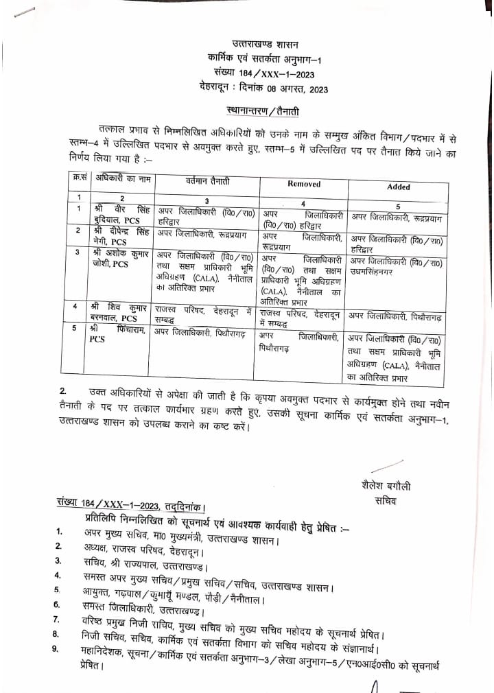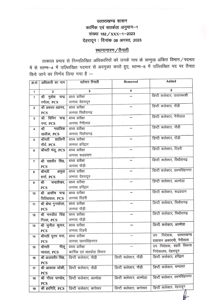 मुख्यमंत्री धामी ने 52 पीसीएस और 2 आई एस अधिकारियों के किए ट्रान्सफर।.