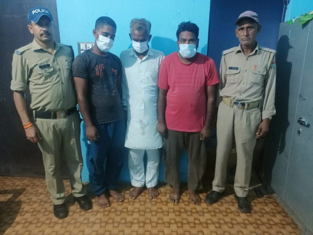 कोतवाली ज्वालापुर‘-आज दिनांक 21/08/23 को कोतवाली ज्वालापुर क्षेत्रांतर्गत बाल्मीकि बस्ती रोड निकट दीक्षा राइजिंग स्कूल के सामने गंगनहर की झाड़ियों में गौकशी की सूचना पर पुलिस टीम द्वारा त्वरित कार्यवाही करते हुए मौके पर पहुंचकर 300 ग्राम गौमांस व गौकशी उपकरण बरामद करते हुए 03 अभियुक्तों को धर दबोचा गया साथ ही मौके से 02 मोटर साइकिल जब्त की गई। अन्य अभियुक्तों की तलाश जारी है।