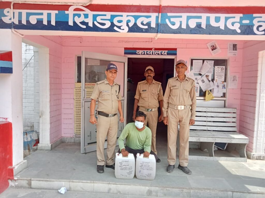धर दबोचा कच्ची शराब बेचने वाला अभियुक्त व बरामद की 20 लीटर कच्ची शराब।
