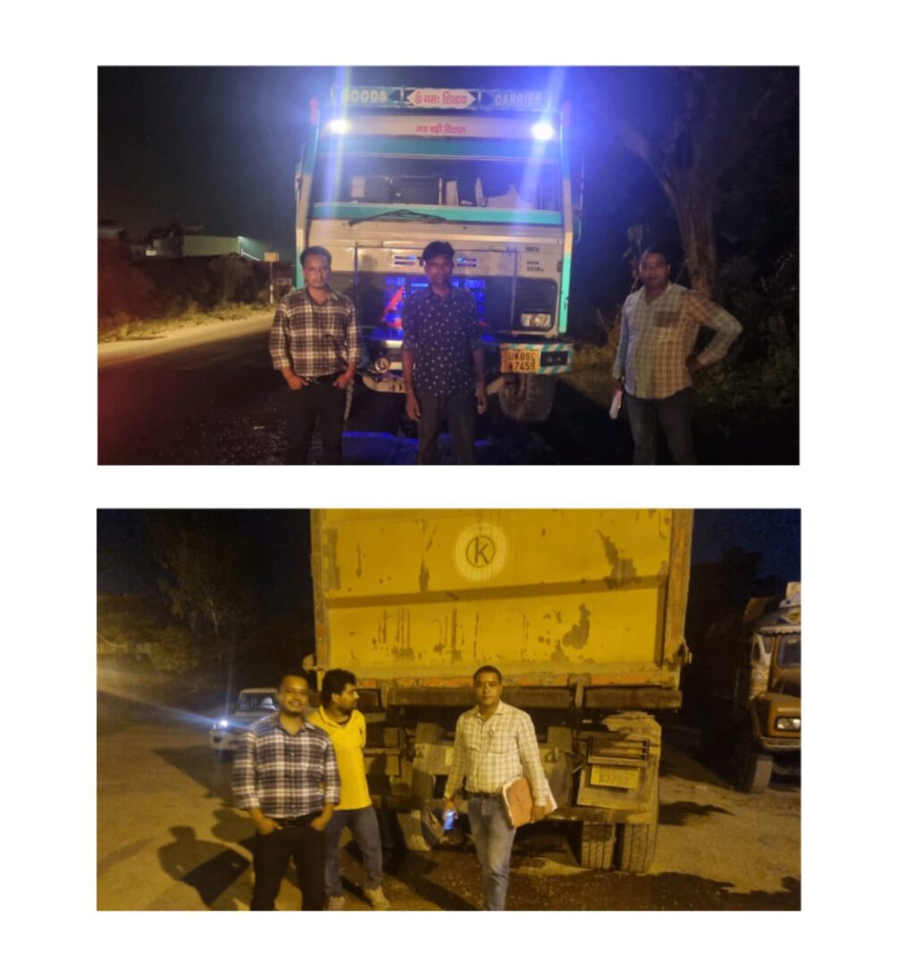 इसके उपरांत खनन विभाग की टीम ने गश्त बढ़ाई तो सांय 6.30 पर बहादराबाद- हरिद्वार मोटर मार्ग पर जांच कर रहे थे तभी एक वाहन सं. – UK08CB/3752 (22 टायरा) आता दिखा जिसमें ई-रवन्ना सुबह 11:00 बजे से कटा पाया गया परन्तु वाहन के 11:00 बजे से 6:00 बजे तक मात्र रेंगते पाये जाने पर 01 रवन्ना पर 02 चक्कर लगाने की संभावना के दृष्टिगत कार्यवाही की गयी है, वाहन चालक मुस्तफा पुत्र मुर्तजा, निवासी भारापुर, रुड़की कोई ठोस जबाब नही दे पाया जिसमे 37 टन कोरसेंड भरी पायी गयी जो अवैध होने के कारण वाहन को सीज करके जय दुर्गे स्टोन क्रेशर, इब्राहिमपुर के मुंशी के सुपुर्द किया गया है। इसके उपरांत टीम रात्री गश्त पर भोगपुर की ओर निकली। जैसे ही टीम 8:00 बजे धनपुरा गांव की ओर गयी उधर से UKO8CA/7469 (10 टायरा) आता दिखा वाहन चालक कोई वैध कागजात नही दिखा पाया, वाहन में 16 घनमीटर कोरसेंड भरी पायी गयी जो अवैध थी, वाहन को सीज कर पुलिस चौकी फेरुपुर के सुपुर्द किया गया है। जिला खान अधिकारी हरिद्वार प्रदीप कुमार का कहना है कि जो भी वाहन अवैध परिवहन में पकड़ा जाता है उसे तत्काल सीज कर दिया जाता है, यदि किसी वाहन में गलत ई-रवन्ना पाया जाता है या अधिक समय का ई-रवन्ना दिया जाता है, ऐसे केस में जहां से भी रखन्ना काटा जिला खान अधिकारी हरिद्वार प्रदीप कुमार का कहना है कि जो भी वाहन अवैध परिवहन में पकड़ा जाता है उसे तत्काल सीज कर दिया जाता है, यदि किसी वाहन में गलत ई-रवन्ना पाया जाता है या अधिक समय का ई- खन्ना दिया जाता है, ऐसे केस में जहां से भी रखन्ना काटा गया होता है उस खनन प्रतिष्ठानों को नोटिस जारी किया जा रहा है, उनका संतोषजनक जबाब न होने के कारण उनका पोर्टल बन्द कर दिया जाएगा। जो भी वाहन फर्जी ई – खन्ना के पाया जायेगा उनको सीज किये जाने के साथ साथ ही वाहन चालक/ स्वामी पर खनन एक्ट व आईटी एक्ट में मुगदमा दर्ज किया जाएगा। ऐसे ही कुछ दिनों पूर्व पकड़ी गयी 02 गाड़ियों में बिना स्टोन क्रेशर से उपखनिज लिए और ई-खन्ना लिए फर्जी खन्ना बाजार से जेनरेट करवाने के कारण वाहन चालक / स्वामी के खिलाफ सम्बंधित स्टोन क्रेशरों से मुगदमा दर्ज किया जा रहा है, जिससे फर्जी ई-रवन्ना जारी करने वालो की तह तक जाया जा सके और वह लोग पकड़े जा सके। जिला खान अधिकारी का कहना है कि हमारी टीम लगातार गश्त कर रही है जो अब रात को भी लगातार गश्त करेगी और अवैध खनन / परिवहन में लिप्त वाहनों और उनसे जुड़े लोगों पर त्वरित कार्यवाही करेगी। ऐसे खनन प्रतिष्ठान जो अवैध उपखनिज वाहनों को देते है उन पर भी कड़ी नजर रखी जा रही है। वाहन चालकों और स्वामियों को भी एक संदेश देना चाह रहे है कि किसी ऐसे खनन प्रतिष्ठान से उपखनिज बिल्कुल न ले ज O खन्ना नही दे रहा है जिससे वाहनों पर कार्यवाही से नही बच पाएंगे।