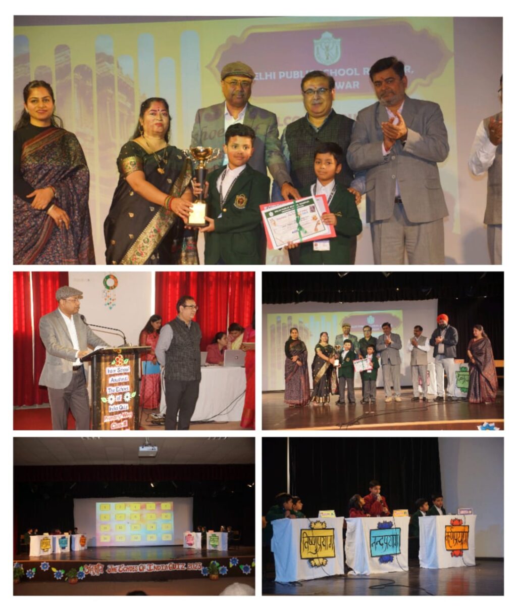 आज दिनांक 25 नवम्बर 2023 को दिल्ली पब्लिक स्कूल रानीपुर में भारत की प्राचीन विरासत एवं परंपरा पर आधारित कक्षा 3 के विद्यार्थियों के लिए एक अंर्तविद्यालयी क्विज प्रतियोगिता ’अनुश्रुति-भारत की गूंज’ का आयोजन किया गया जिसमे हरिद्वार लक्सर एवं रूड़की से 16 विद्यालयों के विद्यार्थियों ने बढ़चढ़ कर भाग लिया।कार्यक्रम का शुभारम्भ अतिथियों द्वारा दीप प्रज्ज्वलन से किया गया तथा बच्चों ने सुंदर स्वागतगीत से सभी अतिथियों एवं प्रतिभागीयों का स्वागत किया साथ ही एक नाटिका के माध्यम से मोबाईल एवं सोशलमीडिया के बढ़ते शिकंजे पर एक जागरूकता संदेश भी दिया।इस अवसर पर मुख्य अतिथि के रूप में भेल हरिद्वार के कार्यपालक निदेशक श्री प्रवीन चंद्र झा एवं श्रीमती सुलेखा झा भेल के महाप्रबंधक मानव संसाधन श्री आलोक शुक्ला, डीपीएस के मेम्बर वित श्री विवेक गोयल, श्रीमती रिचा गोयल एवं मेम्बर श्री सुदीप सलूजा श्रीमती शैलजा सलूजा एंव श्रीमती मनीषा जग्गा उपस्थित रहे।प्रथम चरण में लिखित परीक्षा के आधार पर पांच विद्यालयो के दो दो विद्यार्थी चयनित हुए जिसमें डीएवी सेंटेनरी पब्लिक स्कूल, ग्रीनवे मॉर्डन पब्लिक स्कूल रूड़की, डीपीएस रूड़की, डीपीएस दौलतपुर एवं डीपीएस रानीपुर ने फाईनल राउण्ड के लिए अपनी जगह बनाई।प्रतियोगिता के दूसरे एवं अतिम चरण में कुल सात राउण्ड थे जिसमें पहेली, वृतचित्रम, कथा सागर तथा रैपिड फायर राउण्ड मे बच्चों की प्रतिभा देखते ही बनती थी काई भी विद्यार्थी किसी से कम नही था। दर्शकों ने बच्चों का उत्साहवर्धन करते हुए खुब तालियां बजाई। कार्यक्रम उपस्थित दर्शकों से भी प्रश्न पूछे गए जिसमें सही उत्तर देकर दर्शकों ने भी पुरस्कार जीते।