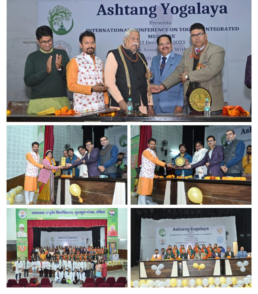 मुख्य अतिथि के रूप में उत्तराखंड आयुर्वेद विश्वविद्यालय के कुलपति डॉ अरुण कुमार त्रिपाठी एवं देव संस्कृति विश्वविद्यालय के संकायाध्यक्ष डॉ ईश्वर भारद्वाज ने दीप प्रज्वलन कर कार्यक्रम प्रारंभ किया l अष्टांग योगालय फाउंडेशन के संस्थापक एवं कार्यक्रम के आयोजन अध्यक्ष श्री अर्पण शर्मा ने बताया कि यह योग का यह अंतरराष्ट्रीय सम्मेलन विद्यार्थियों को शोध क्षेत्र में आगे बढ़ाने में बहुत सहयोग करेगा l भविष्य में हरिद्वार में अनुसंधान केंद्र खोला जाएगा जो विद्यार्थियों एवं शोधार्थियों को शोध में आगे बढ़ाएगा।डॉ ईश्वर भारद्वाज ने विद्यार्थियों शोधार्थियों एवं अन्य सभी को आशीर्वाद एवं बहुत सारी शुभकामनाएं दी l उत्तराखंड आयुर्वेद विश्वविद्यालय के कुलपति डॉ अरुण कुमार त्रिपाठी ने कहा कि इस प्रकार के सम्मेलन विद्यार्थियों और एवं शोधार्थियों के लिए बहुत आवश्यक है l भविष्य में अनुसंधान केंद्र बनने के लिए उत्तराखंड आयुर्वेद विश्वविद्यालय एवं गुरुकुल आयुर्वेद कॉलेज अपना हर संभव सहयोग करेगा।कार्यक्रम के आयोजन सचिव डॉ शिवम मिश्रा ने अद्भुत मंच संचालन कर सभी का मन मोह लिया l गुरुकुल आयुर्वेद विश्वविद्यालय के विद्यार्थियों ने सांस्कृतिक कार्यक्रम प्रस्तुत किया।सम्मेलन के दूसरे भाग में शोध विद्यार्थियों ने योग और स्वास्थ्य के ऊपर अपने शोध एवं शोध पत्रों को प्रस्तुत किया l सम्मेलन के दूसरे भाग के कार्यकारी अध्यक्ष के रूप मे देव संस्कृति विश्वविद्यालय के वैकल्पिक चिकित्सा के विभागाध्यक्ष डॉ अमृत लाल गुरवेंद्र एवं पतंजलि विश्वविद्यालय के योग विभाग के विभागाध्यक्ष डॉ निधीश कुमार यादव ने अध्यक्षता की l शोध पत्र प्रस्तुत करने वाले विद्यार्थियों को शोध के महत्वपूर्ण और मुख्य मुख्य बिंदुओं को स्पष्ट किया गया l ऑनलाइन एवं ऑफलाइन कुल 400 से अधिक विद्यार्थियों ने देश एवं विदेश से प्रतिभाग किया l 137 से अधिक शोध पत्र प्रस्तुत किए गए l सर्वश्रेष्ठ शोध पत्र देव संस्कृति विश्वविद्यालय की मनोविज्ञान विभाग की शोधार्थी चित्रा कश्यप ने प्रस्तुत किया, जिनको कार्यकारी अध्यक्ष द्वारा सम्मानित किया गया।इस मौके पर उत्तराखंड आयुर्वेद कॉलेज के प्रधानाचार्य निदेशक डॉ विपिन कुमार पांडे एवं स्वस्थ व्रत योग विभाग के विभागाध्यक्ष डॉ अवधेश मिश्रा, श्री जगदीश लाल पाहवा, डॉ सौरभ, ऋषिकुल आयुर्वेद कॉलेज से डॉ वेद भूषण शर्मा, स्वाति भारद्वाज, संतोष शर्मा, ऋषिकांत, शिवम मिश्रा, विश्वास त्यागी, अमन दुबे, रमन शर्मा, नूतन गौड़ आदि मौजूद रहे l