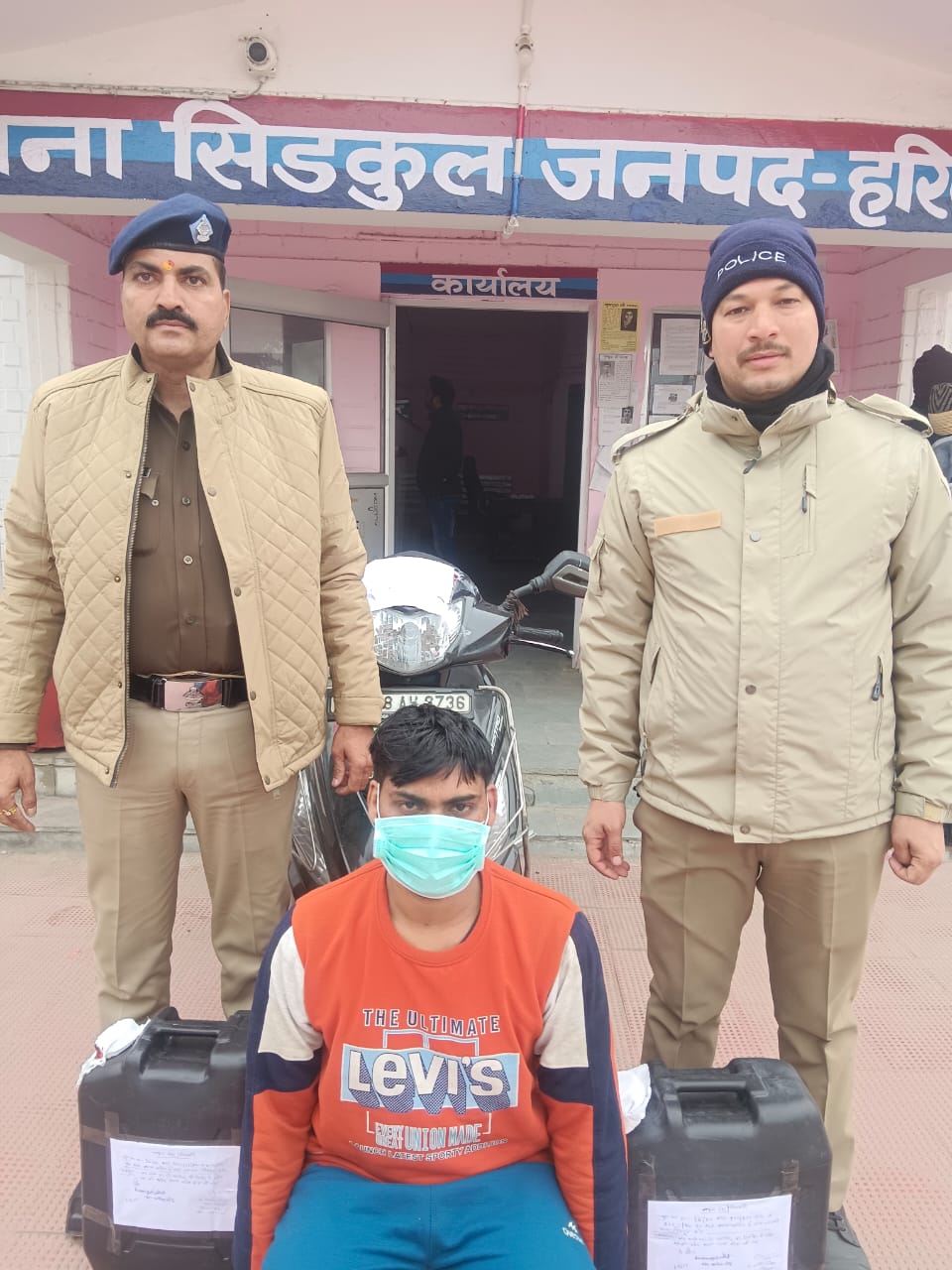 उक्त के क्रम में दिनाक 07/01/24 को दौराने चैकिंग 40 लीटर अवैध कच्ची शराब मय स्कूटी संख्या UK 08 AW 8736 मैस्ट्रो के साथ 01अभियुक्त को गणेश धर्म कांटा के पास ही जैसे ही उक्त स्कूटी चालक को रोकने का प्रयास किया तो वह मुड़कर भागने लगा तथा वहीं पर गिर गया इसको पकड़ने का प्रयास किया गया तो कांस्टेबल 1093 अनिल कंडारी पर हाथ से हमला करते हुए मौके से रावली महदूद की तरह भागने का प्रयास किया तो भागते हुए ठोकर खाकर स्वयं ही रोड पर गिर गया जिसको तुरंत ही मौके पर पकड़ लिया । जिसके विरुद्ध थाना हाजा पर मुकदमा अपराध संख्या 16/2024 धारा 332/353 IPC व 60 /72 आबकारी अधिनियम बनाम ललित उर्फ मांगा पंजीकृत किया गया।