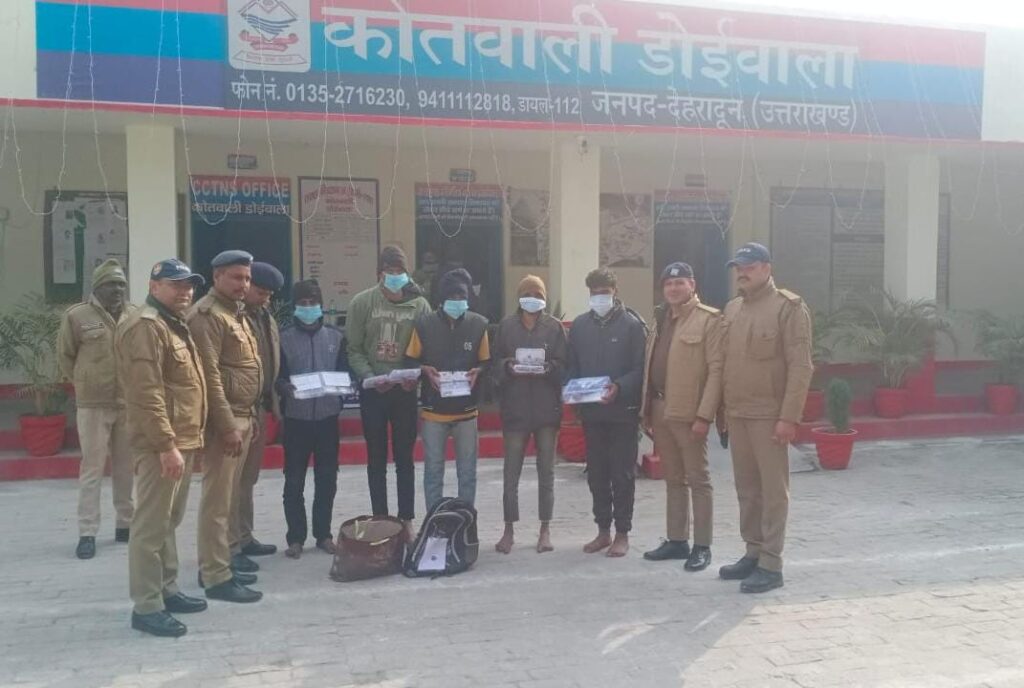 दूंन पुलिस ने किया चोरी की 04 बडी घटनाओ का सफल अनावरण,घटना को अंजाम देने वाले गिरोह के 05 शातिर सदस्यों को कोतवाली डोईवाला व थाना रानीपोखरी की संयुक्त टीम ने गिरफ्तार कर भेजा सलाखो के पीछे।थाना रानीपोखरी तथा कोतवाली डोईवाला क्षेत्र में दिया था चोरी की 04 घटनाओं को अंजाम ।