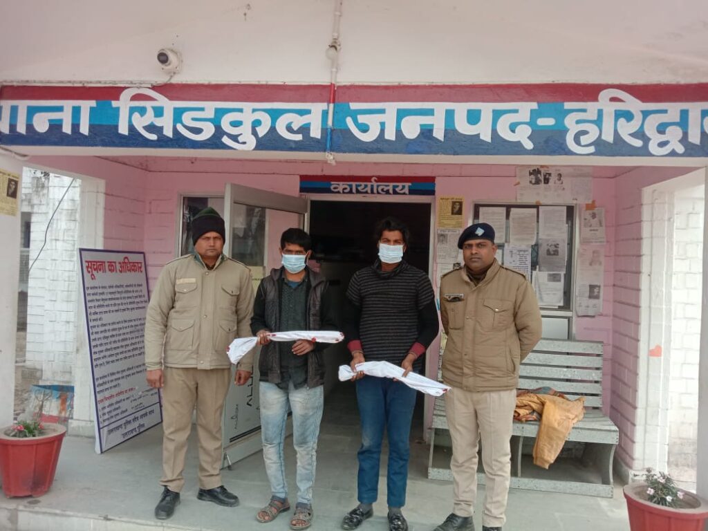 दिनांक 28.01.2024 को थाना सिडकुल पुलिस द्वारा 02 आरोपियों 1-अर्जुन राणा 2- जाहिद अली उर्फ छोटन को शनिदेव मंदिर रोशनाबाद के पास से चोरी के उपकरणो (आलानकब) के साथ धर दबोचा।