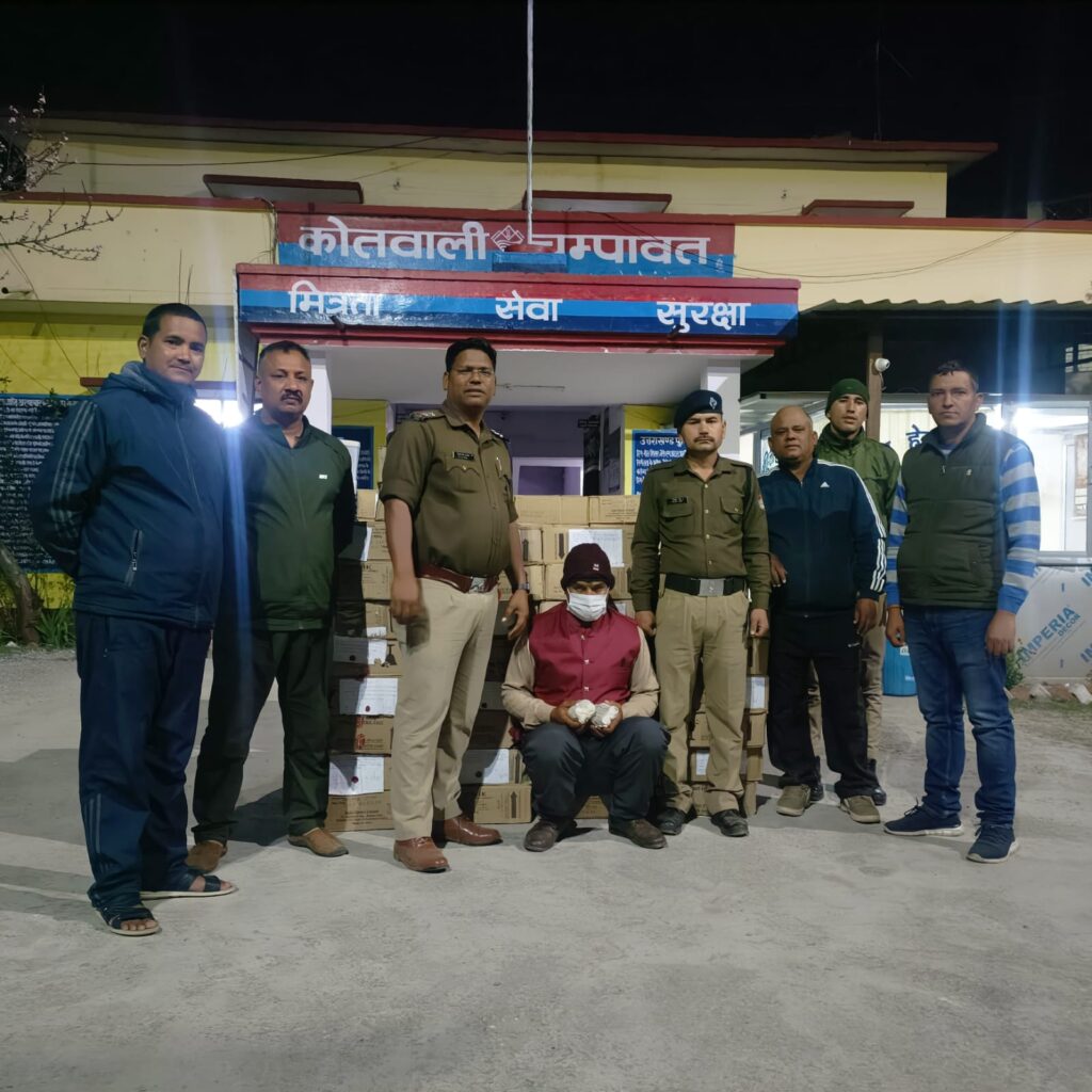 श्री अजय गणपति, पुलिस अधीक्षक महोदय चम्पावत के निर्देशानुसार तथा क्षेत्राधिकारी महोदय चंपावत /टनकपुर के पर्यवेक्षण में जनपद चंपावत में आदर्श आचार संहिता का पूर्ण रुप से पालन कराते हुए मादक पदार्थों की तस्करी करने वाले अभियुक्तों के विरुद्ध कार्यवाही करने हेतु सभी थाना प्रभारीयो को निर्देशित किया गया है। उक्त के क्रम में दिनांक 20/03/2024 को जनपद चंपावत के *कोतवाली चंपावत तथा थाना टनकपुर क्षेत्र* से *02 अभियुक्तों* को गिरफ्तार कर उनके *कब्जे से 68 पेटी व 49 पव्वे अवैध शराब* बरामद किया गया। जिसमे -