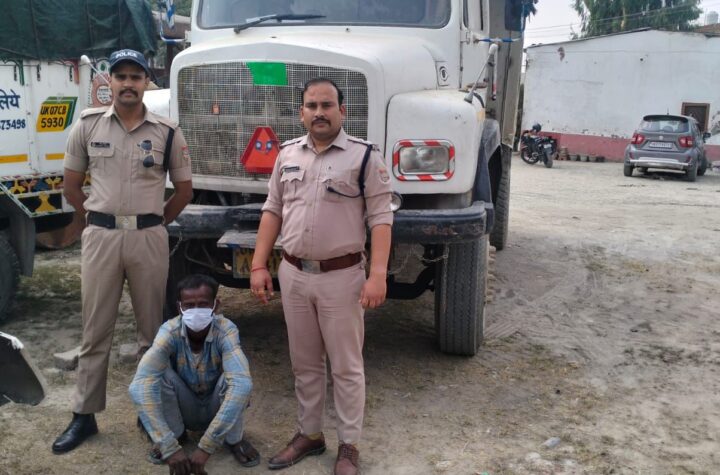 चोरी के डंपर संख्या UK07CA 4413 के साथ अभियुक्त को थाना नेहरू कॉलोनी पुलिस...