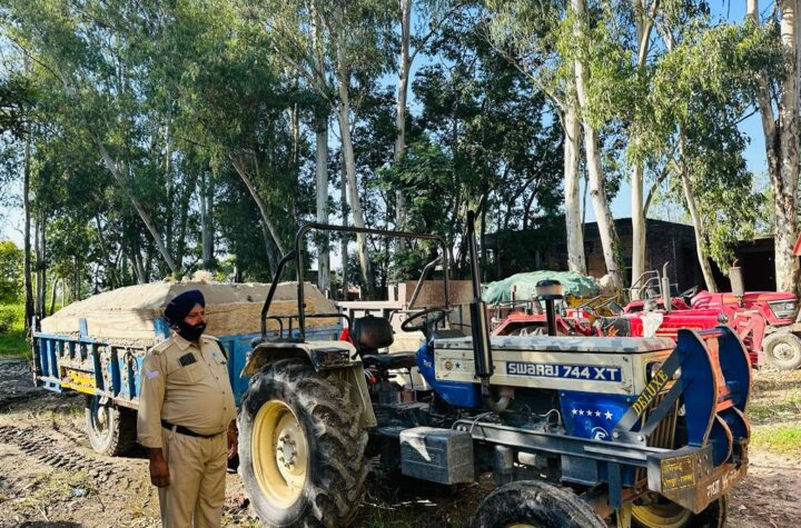 पुलिस ने छापेमारी के दौरान भिक्कमपुर क्षेत्र में अवैध खनन करते एक ट्रैक्टर मय...