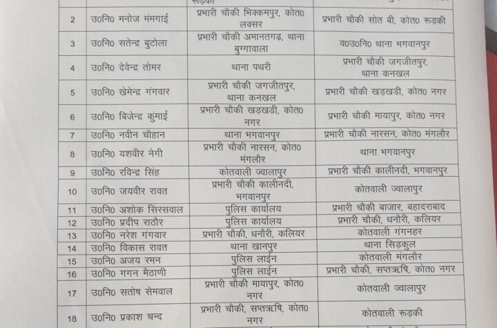 हरिद्वार जनपद में एसएसपी अजय सिंह ने 10 चौकियों के प्रभारियों को बदलते हुए...
