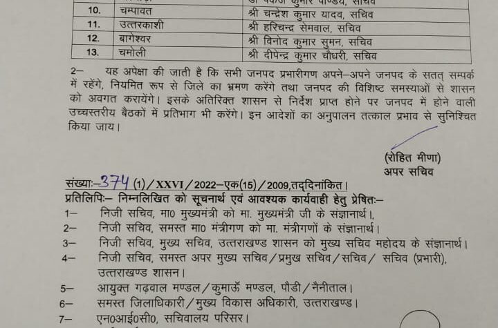 मुख्यमंत्री के आदेश पर 13 जिलों के प्रभारी सचिव किए नियुक्त।देहरादून जिले के प्रभारी...
