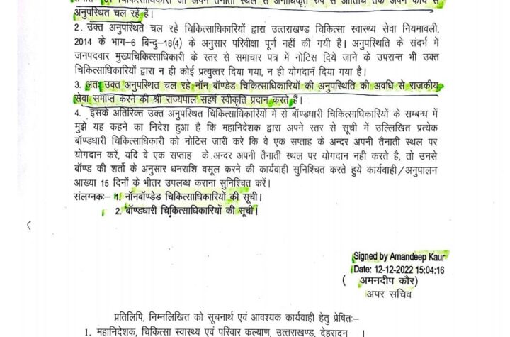 स्वास्थ्य सचिव डॉ आर राजेश कुमार का बड़ा फैसला,लम्बे समय से गैरहाजिर चल रहे...