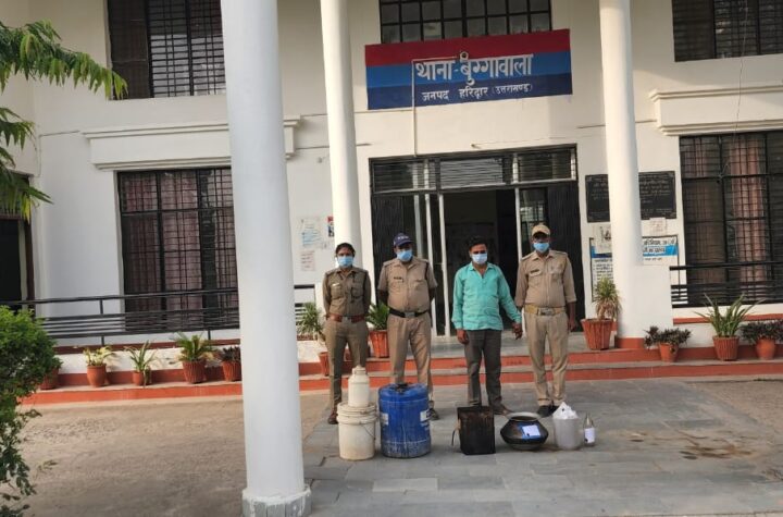 10 लीटर अवैध कच्ची शराब मय भट्टी उपकरणों के एक अभियुक्त गिरफ्तार मौके से...